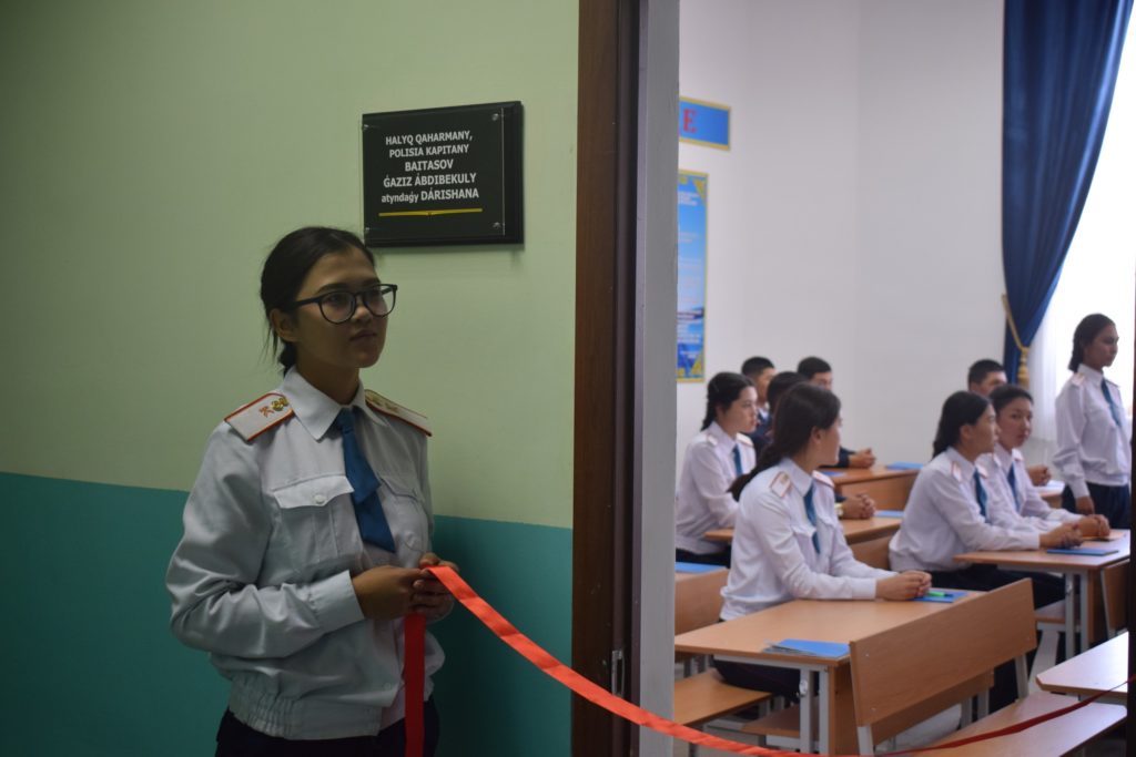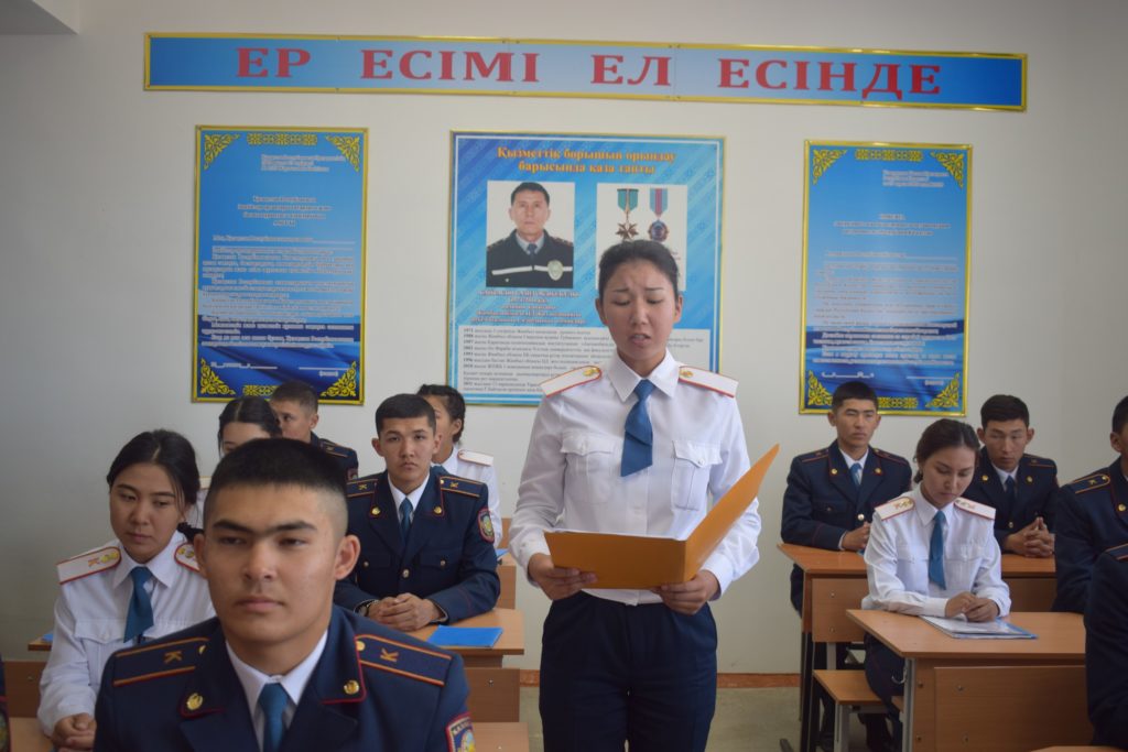 Іс-шара келген қонақтарға институтта орналасқан фронт-офистің жұмысымен таныстырудан басталды. Институт қабырғасында ел үшін туған ер, қауіпсіздікті сақтау ісінде нағыз отансүйгіштігін дәлелдеген бүгінгінің батыры, ішкі істер органының майталман қызметкері болған полиция капитаны Ғазиз Байтасовтың атына дәріс залы ашылып, залдың төрінде тұрған Ғазиздың суреті, өмірбаяны мен ерлігі жазылған тақта орын алған. Институт бастығының орынбасары полиция полковнигі А.М.Хайрулин дәріс залын ашу барысында Ғ.Байтасовтың жасаған ерлігі туралы айтып өтті. 1А курс бастығының тәрбие жұмысы жөніндегі орынбасары полиция майоры Н.Қ.Сүлейменов ашылған дәріс залында курсанттарға «Ер есімі, ел есінде» тақырыпбында тәрбие сабағын жүргізді. Сонан соң, жалпы білім беру пәндері кафедрасының бастығы полиция полковнигі А.Ф.Саттарова институттың профессорлық-оқытушылық құрамына педагогикалық оқытудың әдіс-тәсілдерін үйрететін Тренинг орталығымен таныстырды. Тренинг орталығымен таныстырудан соң, институттың компьютерлік кабинетінде виртуалдық оқиға орнын қарау бағдарламасы көрсетілді. Мектеп жасындағы жасөспірімдерді патриоттық тәрбиеге баулу мақсатында курсанттар институттың саптық алаңында ән айтып, саптық жүріспен жүріп өтті. Іс-шара институттағы курсанттардың казармасын, криминалистикалық полигонды тамашалаумен жалғасты.