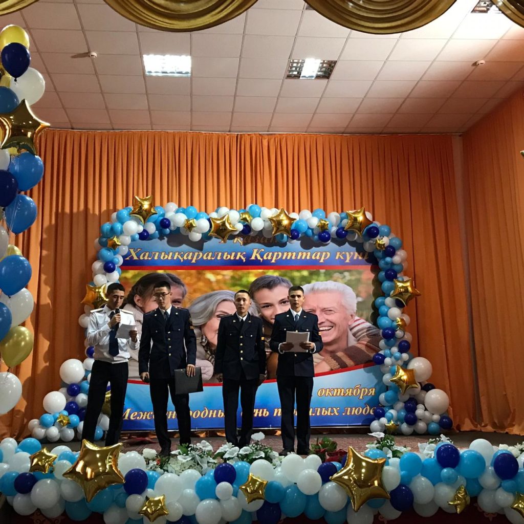 1990 жылғы 1 қазаннан бастап Қазақстан Республикасында Қарттар күні тойланады, осыған орай 2019 жылғы 3 қазанда Қазақстан Республикасы ІІМ М.Бөкенбаев атындағы Ақтөбе заң институтының 2 курс оқу-саптық бөлімшесі бастығының орынбасары, полиция аға лейтенанты Б.С. Елеусизов және институттың курсанттық ғылыми қоғамының курсанттары қарттар мен мүгедектер үйіне барып, мерекелік іс-шара өткізді. Мерекелік кеште 2А және 3А курс курсанттары ән айтып, би билеп, төл туындыларымен қарттардың көңілін аулап, қуантып қайтты.