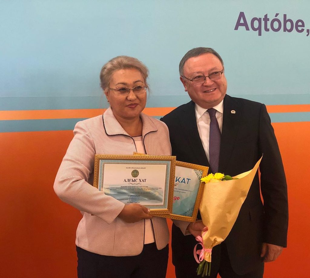 Ақтөбе заң институты тілді дамытуға қосқан үлесі және латын әліпбиін енгізу жобаларына белсенді қатысқаны үшін облыс әкімі О. Оразалиннің қолынан арнайы грамота және 100 000 тг сертификатқа ие болды.