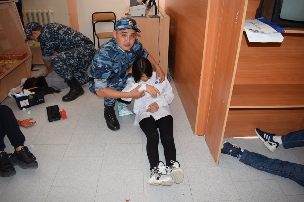 Бес команданың әрқайсысы ұсынылған жағдайларда дәрігерге дейін көмек көрсету үшін білетін әдістерін жүйелі түрде пысықтады, ал төрешілер жіберілген қателіктерді атап, түсінік беріп, әр команданы бағалады.