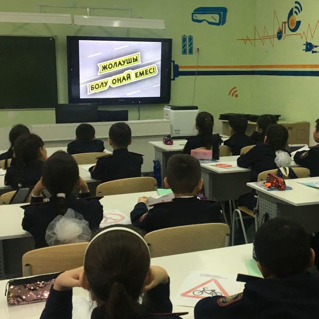 Сонымен қатар, оқытатын бейнефильм көрсетіліп, бейнефильм автомобиль жолдарын өту барысында дұрыс әрекеттер алгоритмін және оларды жүзеге асыру барысында жиі жіберілетін кемшіліктер қарастырылды.