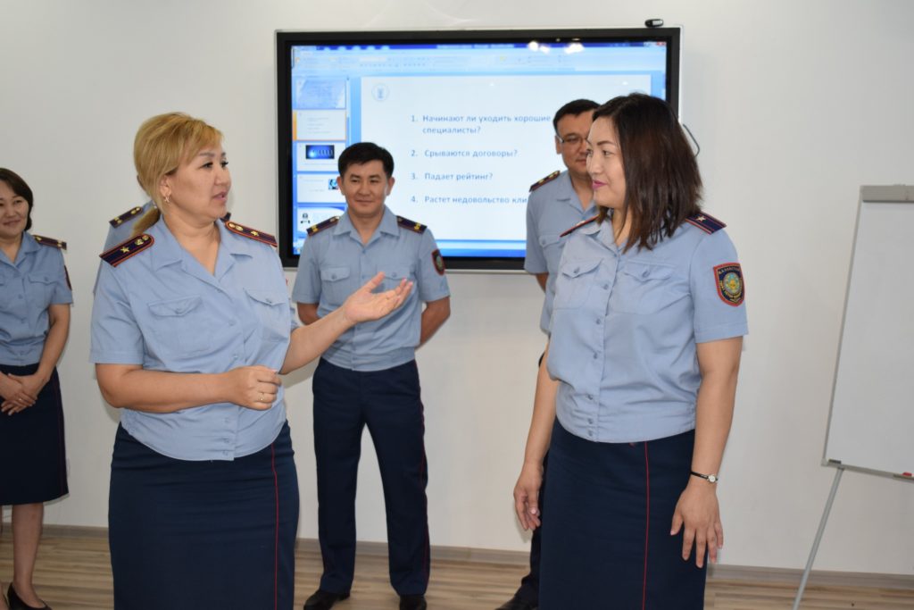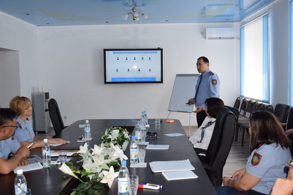 Тренингтің теориялық қасиеттерін талқылағаннан кейін тыңдаушыларға осы бағыттар бойынша жобаларды әзірлеу тапсырмасы берілді. Қазақстан Республикасы Мемлекеттік қызмет істері және сыбайлас жемқорлыққа қарсы іс-қимыл агенттігінің Ақтөбе облысы бойынша департаменті басшысының орынбасары Рафхат Төлеуғалиұлы Бисенов, Қазақстан Республикасы Президентінің жанындағы Мемлекеттік басқару академиясының директоры Саида Әсетқызы Садуақасова, Ақтөбе облысының ПД кадр саясаты басқармасы бастығының орынбасары, полиция майоры Талант Тілеубекұлы Жұмабек, Қазақстан Республикасы ІІМ М. Бөкенбаев атындағы Ақтөбе заң институты бастығының ғылыми жұмыс жөніндегі орынбасары, полиция полковнигі Ғалия Жанабекқызы Сулейманова жұмысты бағалады. Комиссия мүшелерінің әрқайсысы ұнаған модульдерге қатысты өз пікірлерін айтып, барлық қорғау жобалары бойынша ұсыныстар берді. Ғалия Жанабекқызы өз кезегінде көші-қон полициясы басқармасы бастығының орынбасары, полиция подполковнигі М. Х. Назаровтың жобасының креативтілігін және өзектілігін атап өтіп, институттың «Көші-қон және көші-қон мәселелерінің мемлекеттік-құқықтық негіздері» атты ғылыми-зерттеу жұмыс тобының құрамына шақырды .
