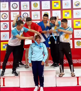 1-орынды жеңіп алып, алтыннан алқа тағынған курсантымыз