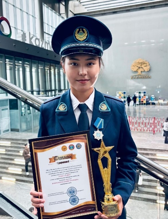 «BILIM-ORKENIETI» Ұлттық инновациялық ғылыми-зерттеу орталығы мен «Үздік студенттер» академиясы ұйымдастырған республикалық «Үздік студент» байқауында ҚР ІІМ М.Бөкенбаев атындағы Актөбе заң институтының 2-курс, 3-взвод курсанты, полиция кіші сержанты Күлмұханова Дария Захарқызы I дәрежелі дипломға ие болды.