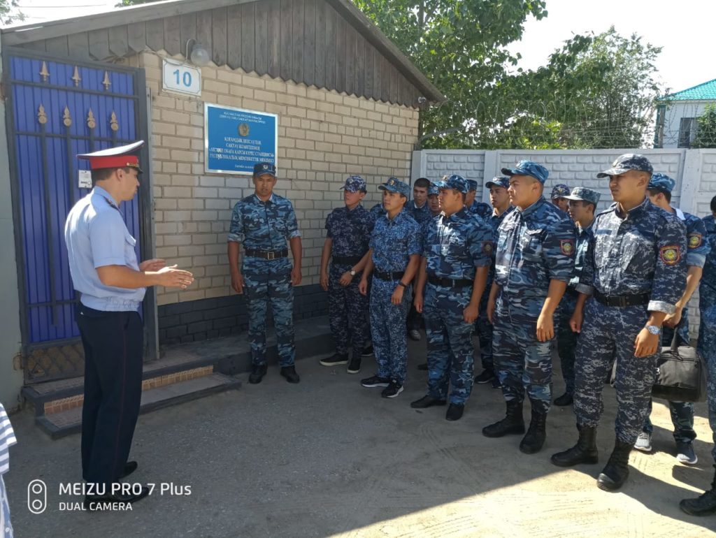 Сабақ барысында Ақтөбе облысы МКҚ полициясы және техникалық қызмет көрсету бөлімінің аға инспекторы, полиция майоры А.В.Гулей тыңдаушыларға Қазақстан Республикасы Ішкі істер министрлігінің МКҚ жұмысын ұйымдастыру тәртібімен таныстырып, күзетілетін обьектілерде өткізу және тексеру жүргізудің негізін, тәртібін ұйымдастыру және жүзеге асырудың ережесін түсіндірді.