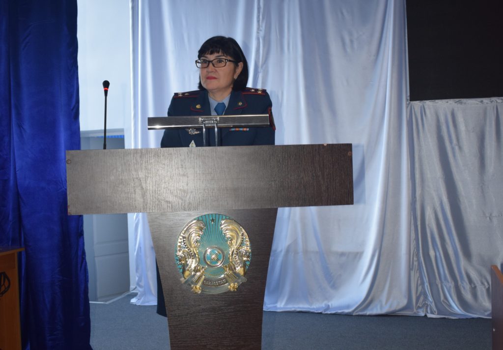 Полиция майоры В. В. Хасанова ведомстволық оқу орындарында оқу үдерісін ұйымдастыру бойынша бұйрықтар мен нұсқаулықтардың ережелерін, институттың ішкі тәртіп ережелерін түсіндірді, сондай-ақ мемлекеттік қызметшінің Әдеп кодексін сақтау қажеттілігі туралы атап өтті.
