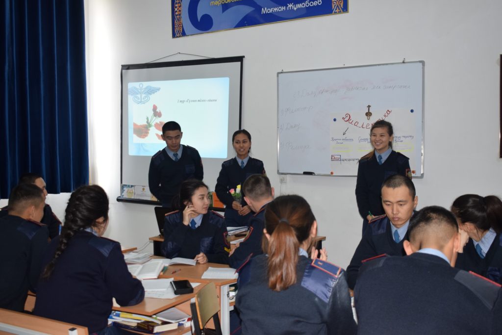 Семинар сабақ мультимедиялық презентациялармен сүйемелденді. Оқытушы курсанттармен топтық жұмыс ұйымдастырды, бұл курсанттарға жоғары белсенділік пен қызығушылық танытуға, сондай-ақ өз пікірлерін белсенді айтуға, «кері байланыс» беруге және педагогпен тең дәрежеде ынтымақтасуға мүмкіндік берді. Сабақтың тәрбиелік бағыты жоғары болды.