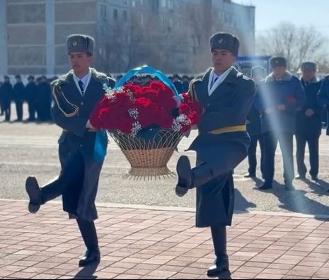 Шара қызметтік міндеттерін атқару кезінде қаза болған полиция қызметкерлеріне арналған ескерткішке гүл шоқтарын қою және бір минут үнсіздікпен басталды.