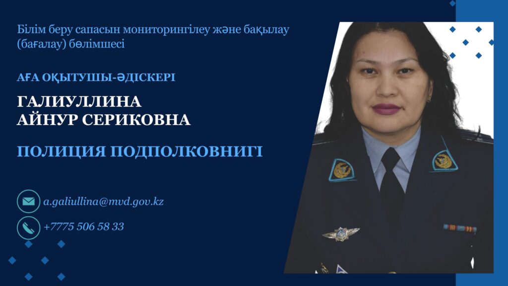 бөлімшенің аға оқытушы-әдіскері полиция подполковнигі,