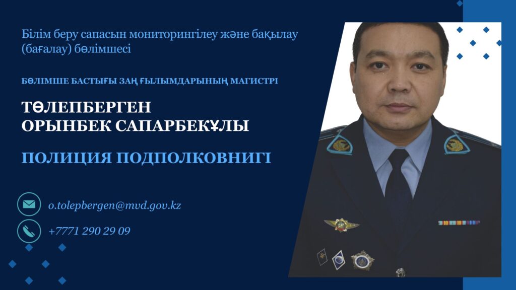 бөлімше бастығы заң ғылымдарының магистрі, полиция подполковнигі
