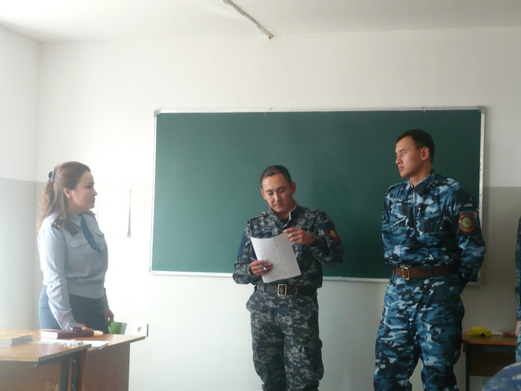 Сонымен, ағымдағы жылдың 22 қазанында алғашқы оқыту курсының тыңдаушылары – орта басшы құрам лауазымдарына тағылымдамадан өтушілерге өткізілген тәжірибелік сабаққа Қазақстан Республикасы ІІМ М.Бөкенбаев атындағы АЗИ-ның инспектор-психологі полиция лейтенанты М.Р.Исламгалеева қатысты. Сабақтың тақырыбы “Психологиялық даярлық” пәні бойынша “Құқық қорғау қызметіндегі экстремалды шарттар мен дағдарыстық жағдайлар” (кафедра бастығы, полиция полковнигі А.Ф. Саттарова).