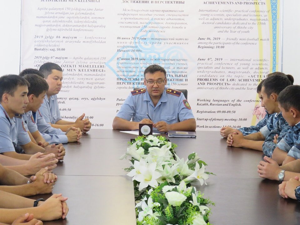Қазақстан Республикасы ІІМ М.Бөкенбаев атындағы Ақтөбе заң институтында 2019 жылдың 12 тамызында «Қазақстан Республикасындағы патрульдік полиция қызметін жетілдіру» атты дөңгелек үстел отырысы өтті. Отырысқа Ақтөбе, Атырау, Батыс Қазақстан, Маңғыстау полиция департаменттерінің патрульдік полиция қызметкерлері және ҚР ІІМ М.Бөкенбаев атындағы Ақтөбе заң институты арнайы бастапқы оқыту курсының тыңдаушылары қатысты.