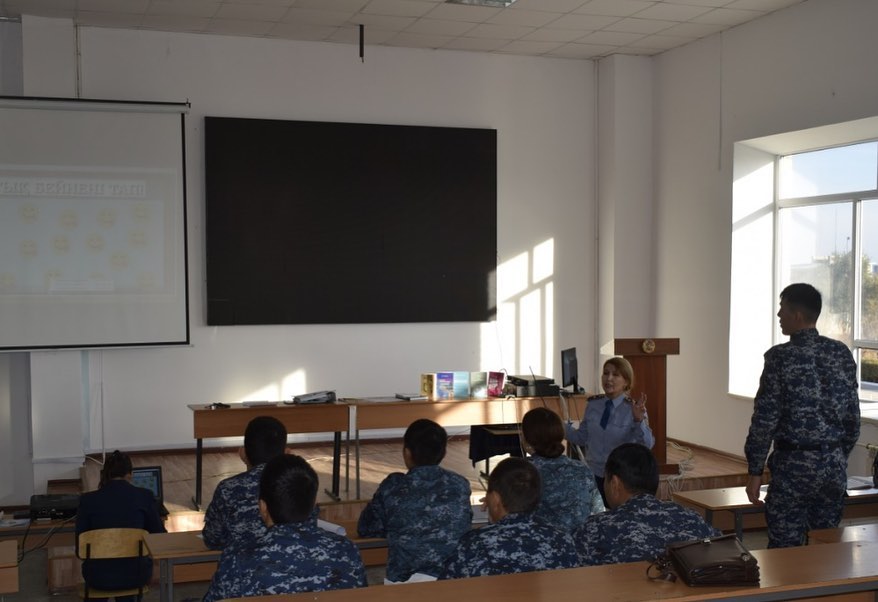 Кәсіби психологиялық даярлық және ІІО басқару кафедрасының аға оқытушысы полиция майоры С.Мендыбаева алғашқы кәсіби даярлық курсының тыңдаушыларына «Психологиялық даярлық» пәні бойынша «Құқық қорғау қызметкерлерінің кәсіби қасиеттерін дамыту» тақырыбында тәжірибелік ашық сабақ өткізді. Сабақ барысында полиция қызметкеріне кәсіби қабілеттіліктері мен қасиеттері қалыптасу әдіс-тәсілдері қарастырылды.