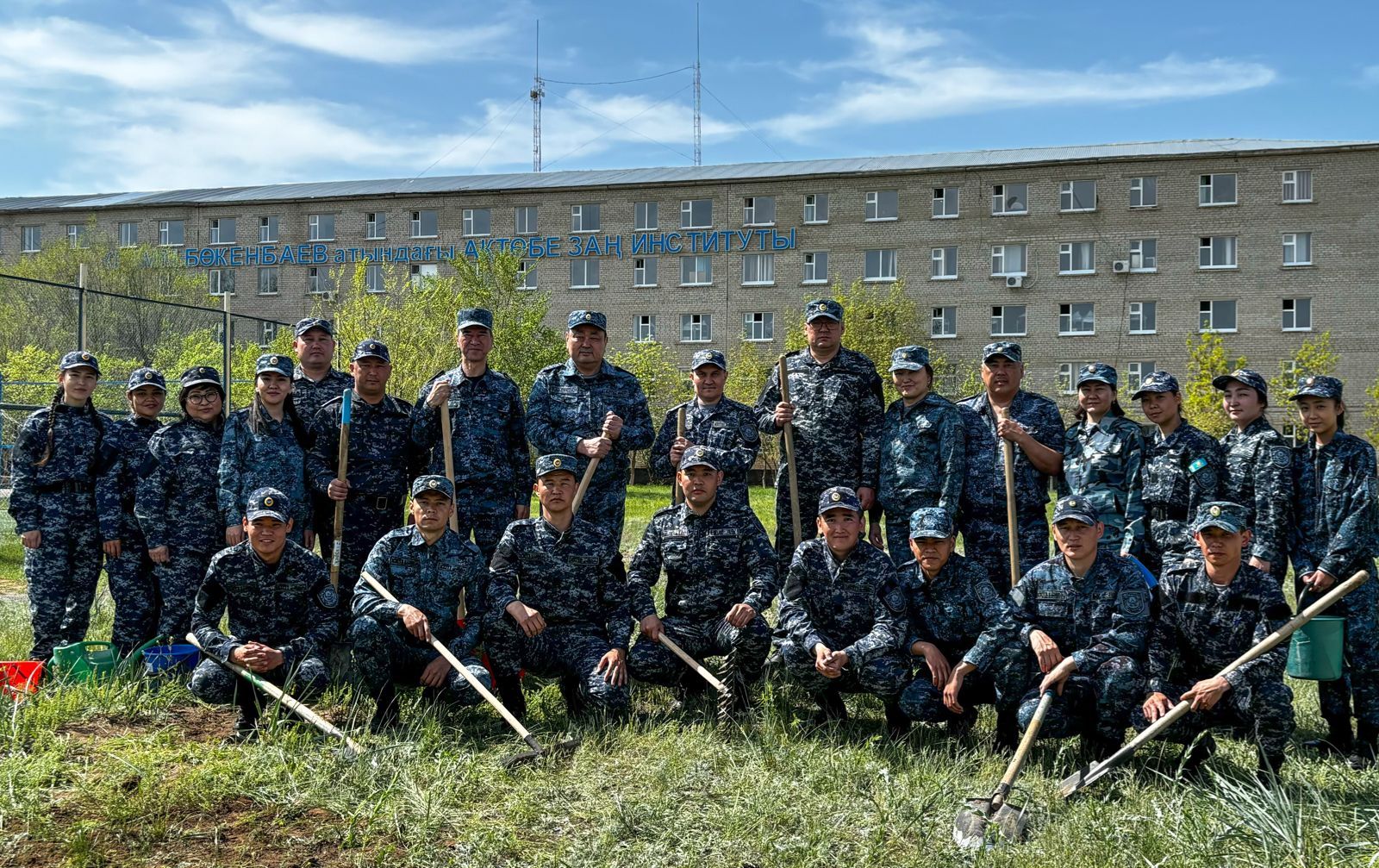 Институт қызметкерлері мен тыңдаушылары қоқыстарды шығарып, сынған бұтақтар мен жапырақтарды жинады.
