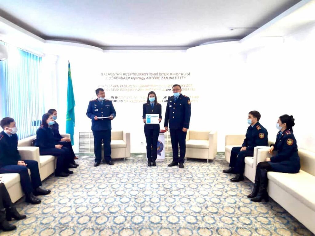 Кездесу барысында 405 оқу тобының курсанттары Н.Ахмет және А. Афанасьеваға «Қылмыстық саясат және ақпараттық дәуірдегі қылмыспен күрес мәселелері» тақырыбындағы жоғары оқу орындары арасында онлайн форматта өткен студенттік ғылыми-тәжірибелік конференцияға қатысқаны үшін сертификаттар табысталды.