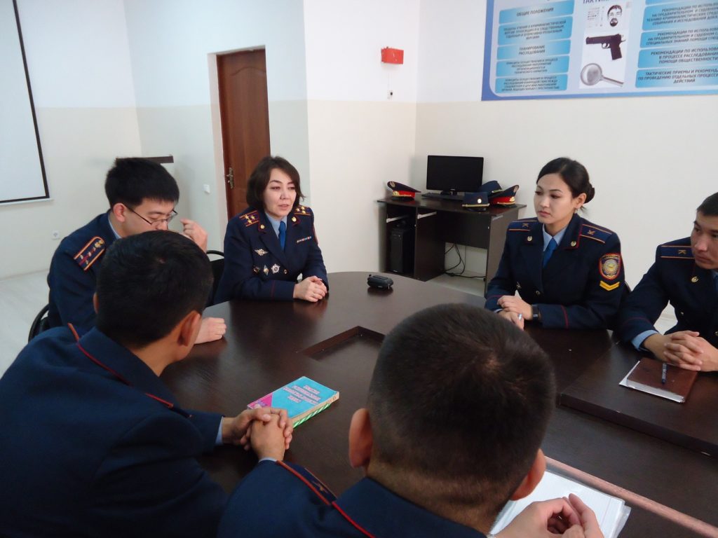 During the practical worker pointed out the objectives of operational forensic services of PD of Aktobe region, innovative forensic products in the detection and investigation of criminal offences, the types of forms of pre-trial investigation, as well as novelties of the criminal procedural law in the field of proof. In addition, attention was focused on the investigation of criminal cases in electronic format during the pre-trial investigation.