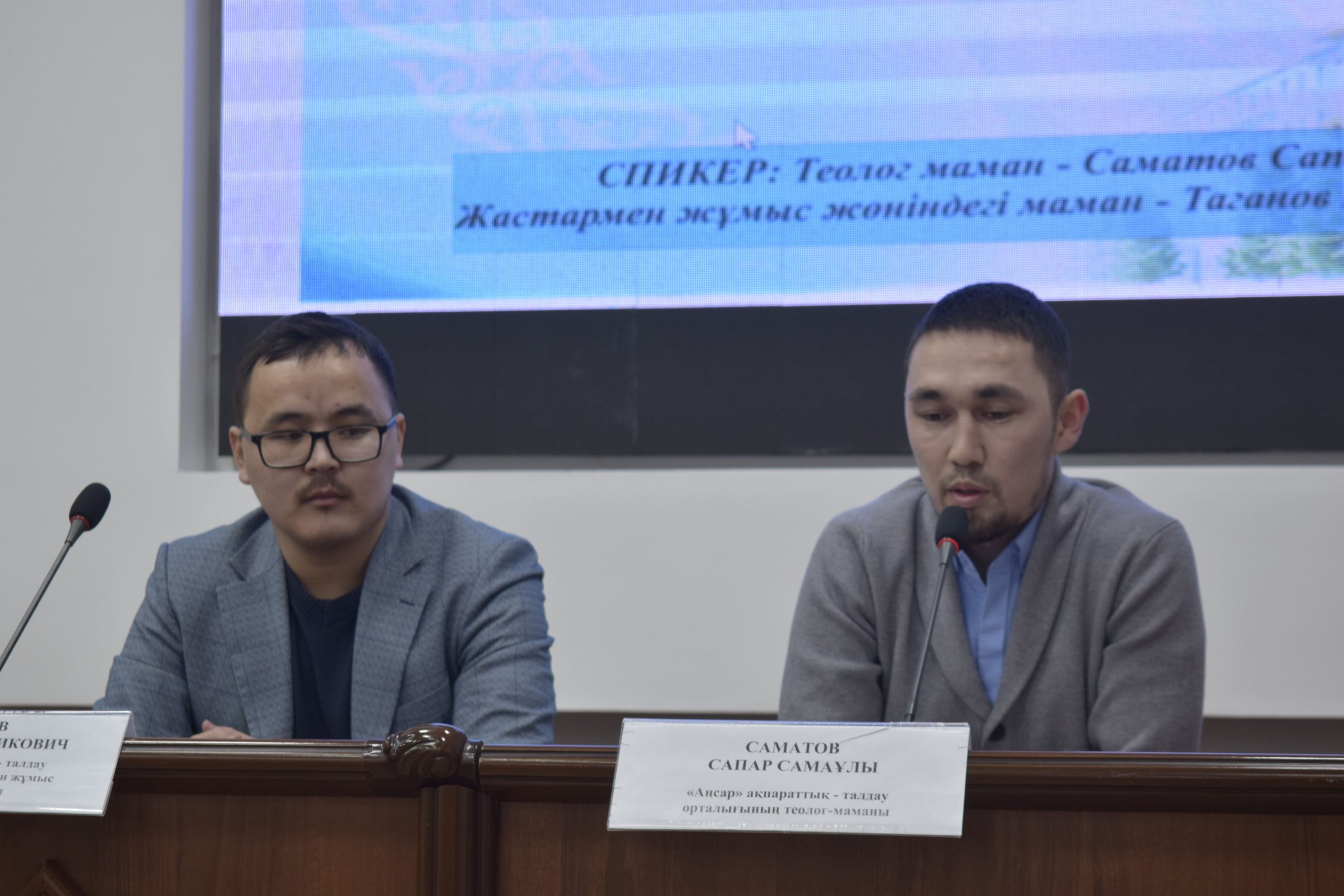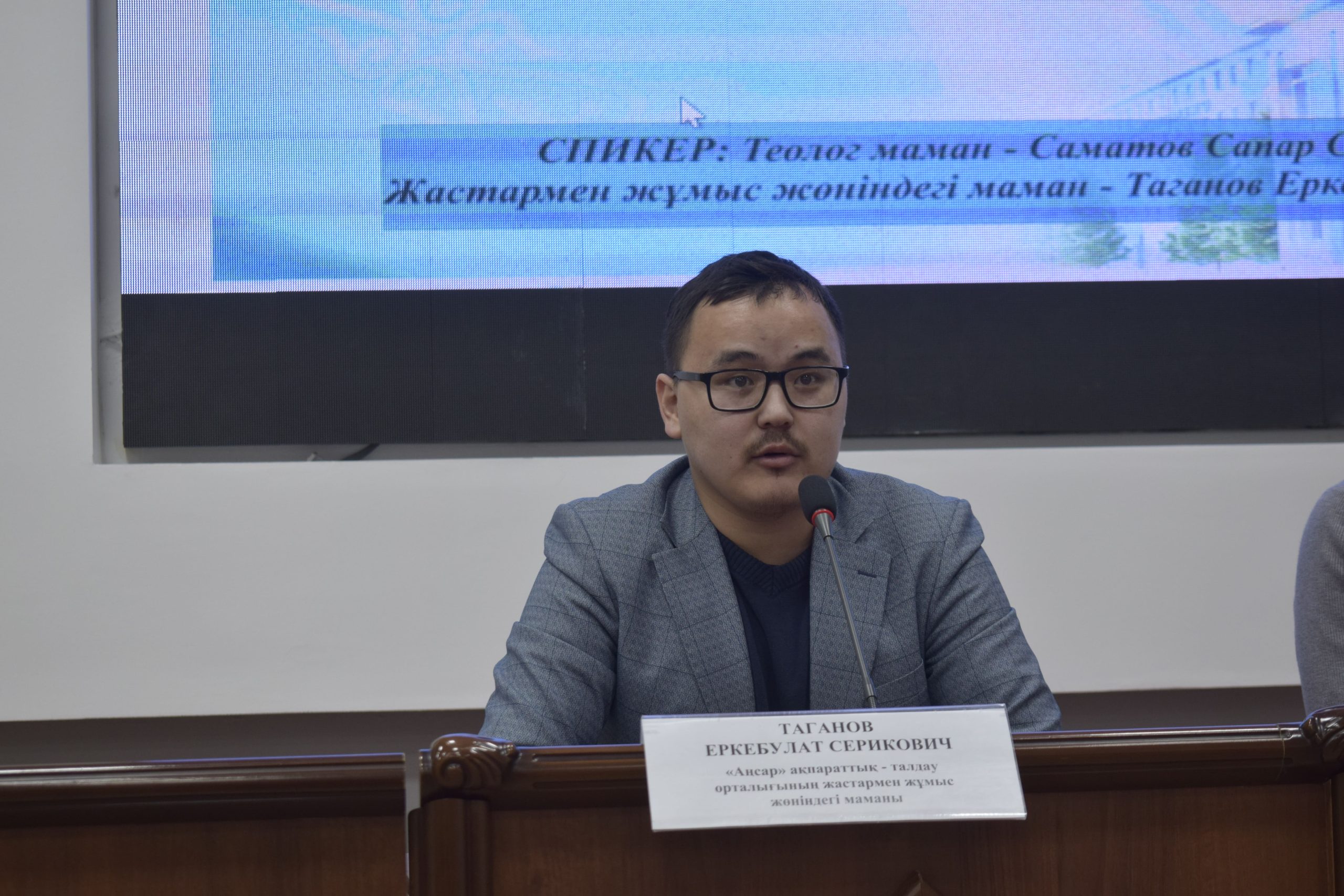 Мемлекеттегі радикализмнің алдын алу, діндегі идеологияны дұрыс бағытта қалыптастыру мақсатында “Аңсар” ақпараттық-талдау орталығының теолог маман- Саматов Сапар Саматұлы, жастармен жұмыс жөніндегі маман- Таганов Еркебулат Серикович Институт жеке құрамымен кездесу ұйымдастырылды.
