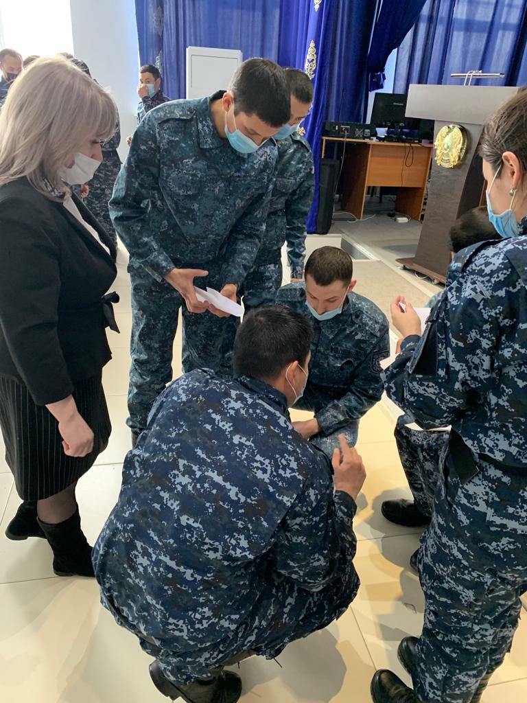 Ерекше жағдайларда полиция қызметкерлерінің психологиялық іс-әрекеттерін пысықтау мақсатында 2022 жылғы 16 ақпанда полиция подполковнигі Т.Е.Бисенованың ұйымдастыруымен Ақтөбе қ. ПБ патрульдік полиция батальонының психолог-инспекторы полиция капитаны О.Н. Хаецкая «Психологиялық даярлық» пәні бойынша тәжірибелік сабақ өткізді.