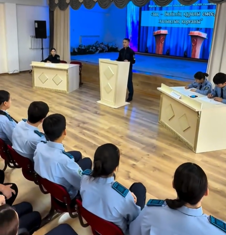 2025 жылғы 19 қарашада «Заң мен тәртіп» иделогиясын ілгерілету мақсатында қылмыстық процесс және криминалистика кафедрасының профессорлық-оқытушылық құрамы «Криминалист» ғылыми үйірмесі аясында 2-курс курсанттары мен Ф.Оңғарсынова атындағы №41 мектеп-гимназиясының «Жас сақшы» полиция кадет сынып оқушылары қатысуымен «Заң – биліктің құралы емес, халықты қорғау» тақырыбында жоспардан тыс пікірталас өткізді.