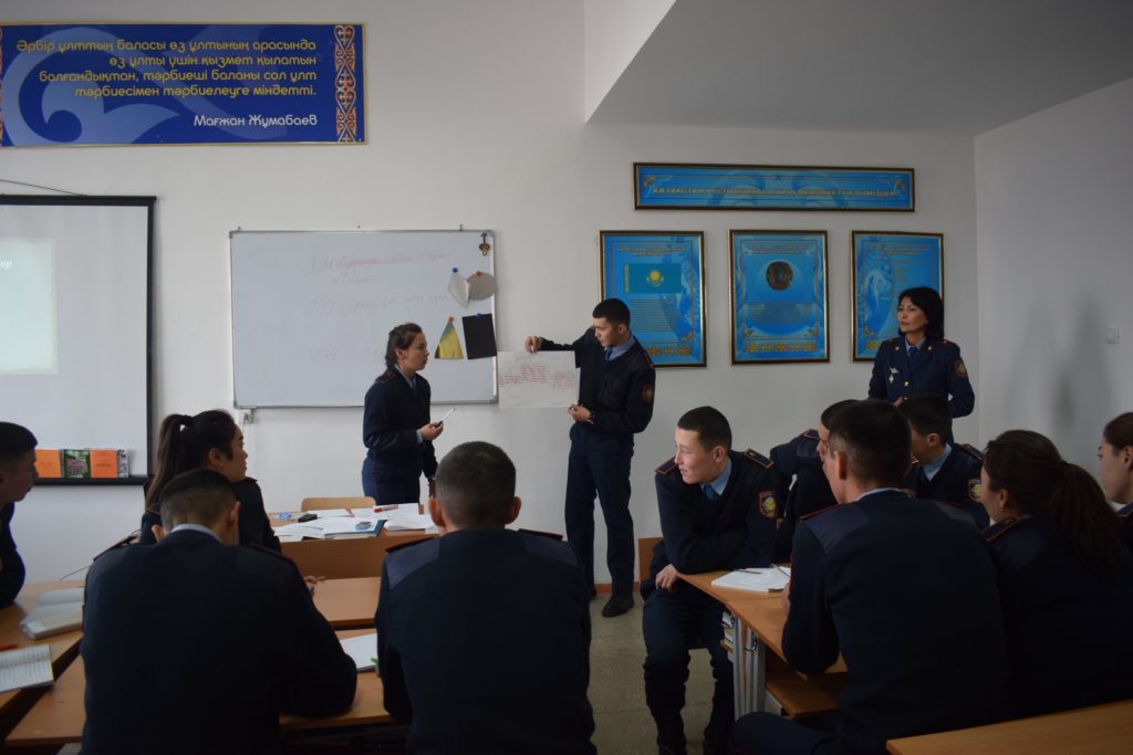 2019 жылғы 6 қарашада жалпы білім беру пәндері кафедрасының жұмыс жоспарына сәйкес, «ІІО қызметкерлерінің қызметіндегі психология» пәні бойынша кафедра оқытушысы, полиция майоры С. А. Меңдібаева “ІІО қызметіндегі кәсіби қарым-қатынас психологиясы және жанжалды жағдайларды басқару” тақырыбында ашық семинар сабағын өткізді.
