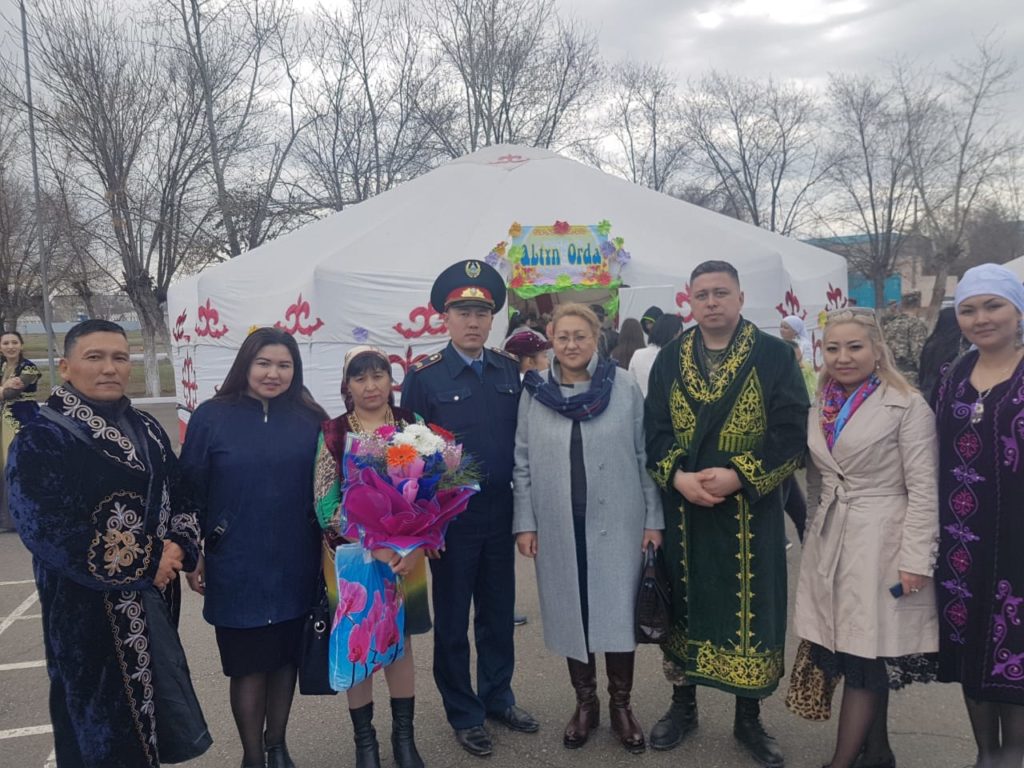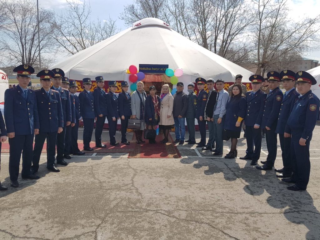 Қазақстан Республикасы ІІМ М.Бөкенбаев атындағы АЗИ делегациясын Кеңес Одағының екі мәрте Батыры Т.Ж. Бегельдинов атындағы ӘҚКӘИ басшылығы мен профессорлық-оқытушылық құрамы күтіп алды. Институт бастығының ғылыми жұмыс жөніндегі орынбасары полиция полковнигі Г.Ж. Сулейманова Кеңес Одағының екі мәрте Батыры Т.Ж. Бегельдинов атындағы Әуе қорғаныс күштері Әскери институтының жеке құрамына табыс тілей отырып, институтбастығы полковник А.А. Ибраевты Қазақстан Республикасы ІІМ М.Бөкенбаев атындағы Ақтөбе заң институтының бастығы полиция полковнигі А.М. Сайтбековтің атынан жеке құттықтады.Содан кейін АЗИ делегациясы оқу орнының мұражайын және мерекеге құрылған киіз үйлерді аралады.Ақтөбе заң институты атынан 1 «А» курсының курсанттары Назым Айдосқызы мен Александра Ковалева өз өнерлерін ортаға салып, музыкалық нөмірлерін қатысушыларға ұсынды. Іс-шара естелік суретке түсумен аяқталды.