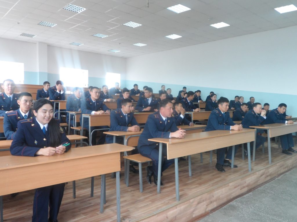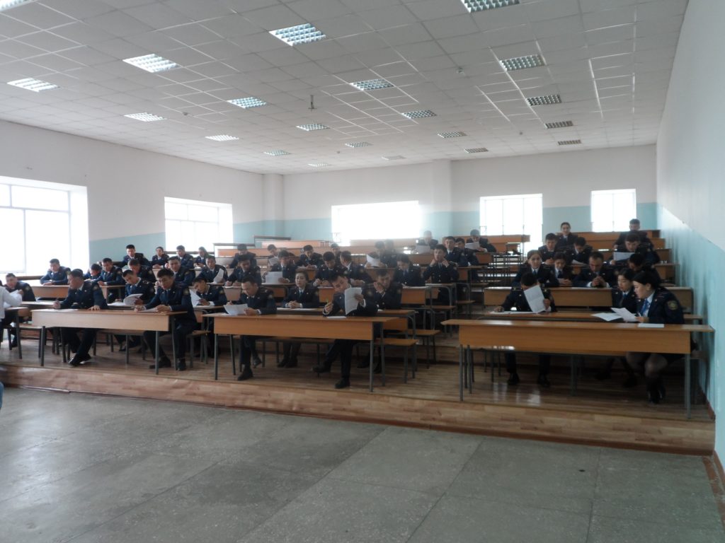 Мемлекеттік емтихан кәсіби тәжірибеден өтіп келген 51 курсантқа «Қазақстан Республикасының қылмыстық құқығы» мен «Қазақстан Республикасының қылмыстық іс жүргізу құқығы» пәндерінен кешеді тестілеу нысанында өткізілді.