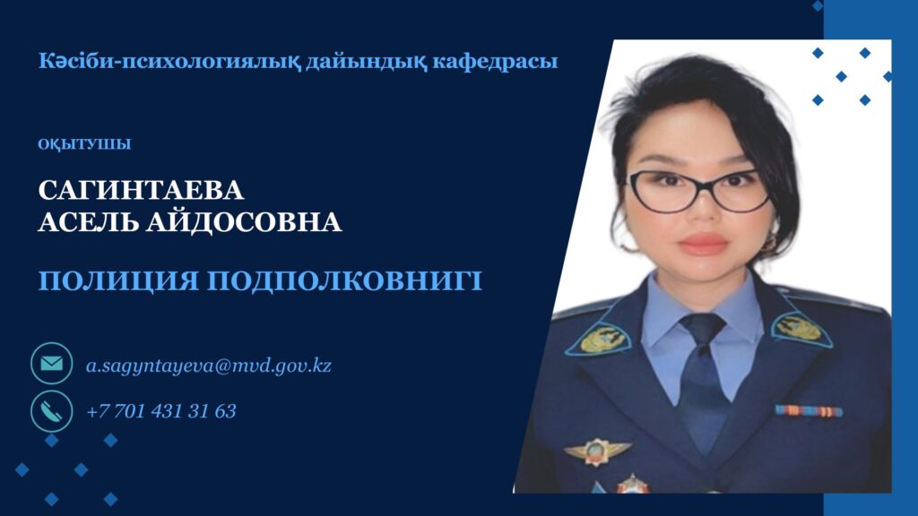 Қазіргі таңда ішкі істер органдарындағы қызмет тек терең құқықтық білім мен жоғары дене шынықтыру дайындығын ғана емес, сонымен қатар жоғары психологиялық тұрақтылықты да талап етеді. Осындай мамандарды даярлау мақсатында институтта кәсіби-психологиялық даярлық кафедрасы жұмыс істейді. Бұл кафедра болашақ полиция қызметкерлерінің кәсіби маңызды жеке қасиеттерін қалыптастыруды қамтамасыз етеді.