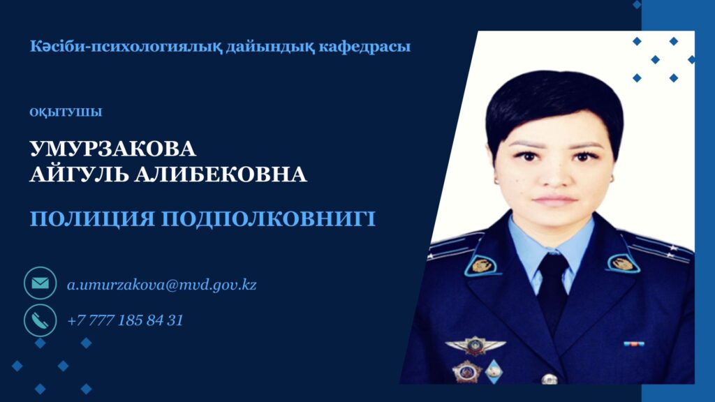Кәсіби психологиялық даярлық кафедрасының біліктілікті арттыру курстарын өткізуі ішкі істер органдарының кадрлық әлеуетін нығайтуға, қызметкерлердің психологиялық мәдениетін арттыруға және кәсіби құзыреттілігін дамытуға ықпал етеді.