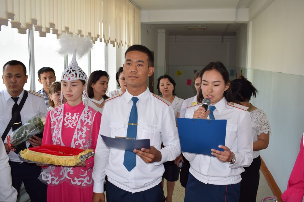 «Әскери дайындық сыныбының» ашылуы соңындаҚазақстан РеспубликасыІІМ М.Бөкенбаев атындағы Ақтөбе заң институтының бастығы, полиция полковнигі А.М. Сайтбеков Қазақстан Республикасының Ішкі істер министрі полиция генерал-лейтенанты Е.З. Тұргымбаевтың атынан Ақтөбе қаласының №1 орта мектебінің әкімшілігіне алғыс білдірілген атаулы хатты тапсырды.