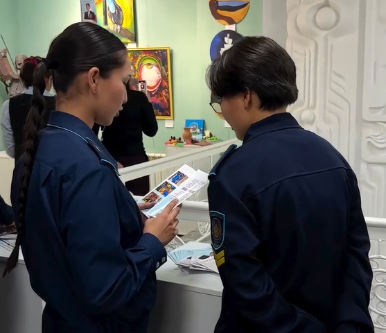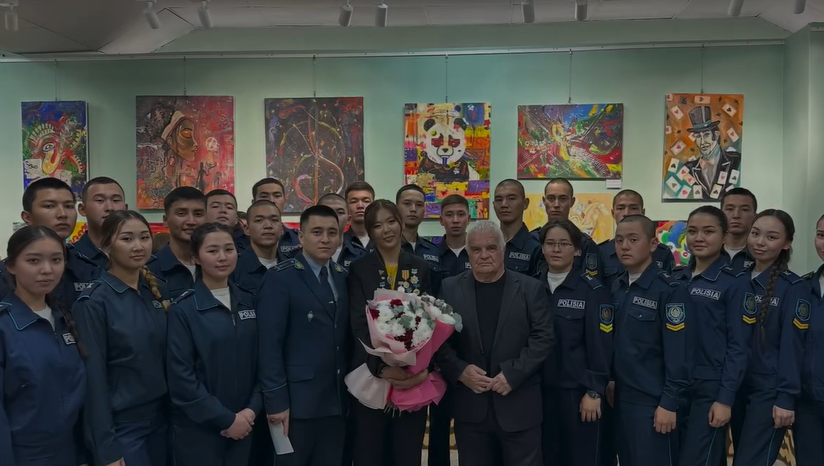 Шараға институттың Ардагерлер кеңесінің төрағасы В. Сюняков, қызметкерлері мен курсанттары қатысып, Айнұр Бақытжанқызын жеке шығармашылық көрмесінің ашылуымен құттықтады, автордың туындыларынан рухани әсер алды.