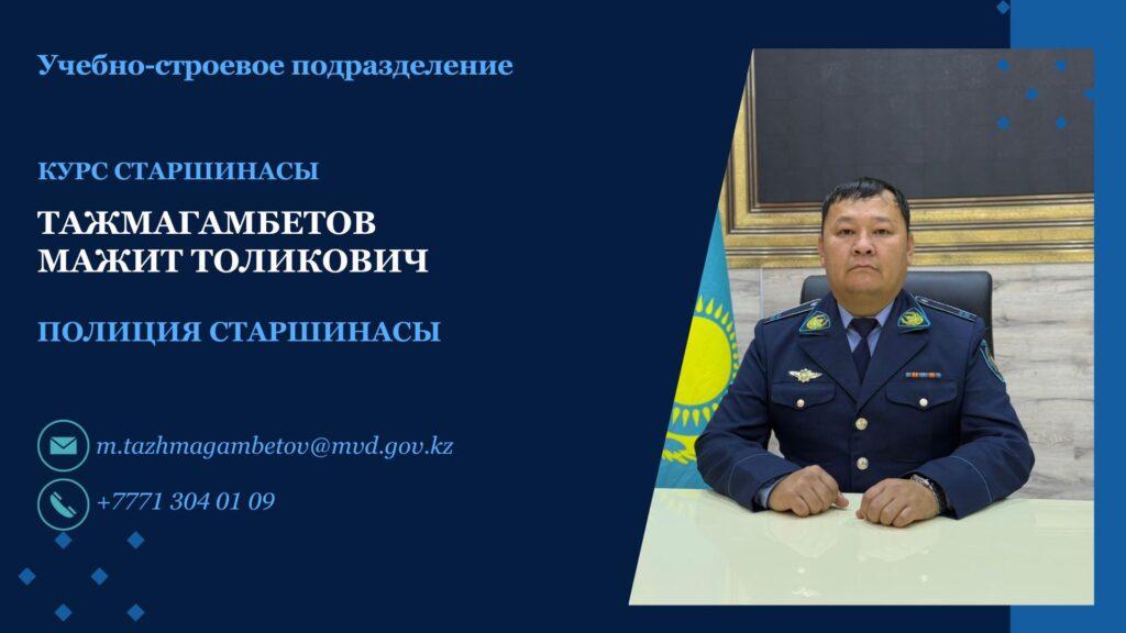 Оқу-саптық бөлімшені институт бастығының орынбасары полиция полковнигі Махамбет Баженұлы Алгожаев басқарады, оның міндеттері: моральдық және психологиялық дайындықты қалыптастыру және қолдау. Курсанттардың бойында қызметтік борышын орындау үшін қажетті қасиеттерді, батылдықты, шыдамдылықты, тапқырлықты, қырағылықты, әскери жолдастық сезімін және өзара көмек сезімін дамыту, Заңдарды құрметтеу, осы мақсатта тәрбиенің жеке үлгісін, қызметке деген адалдықты, сондай-ақ әскери рәсімдерді белсенді пайдалану.