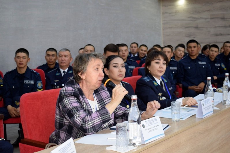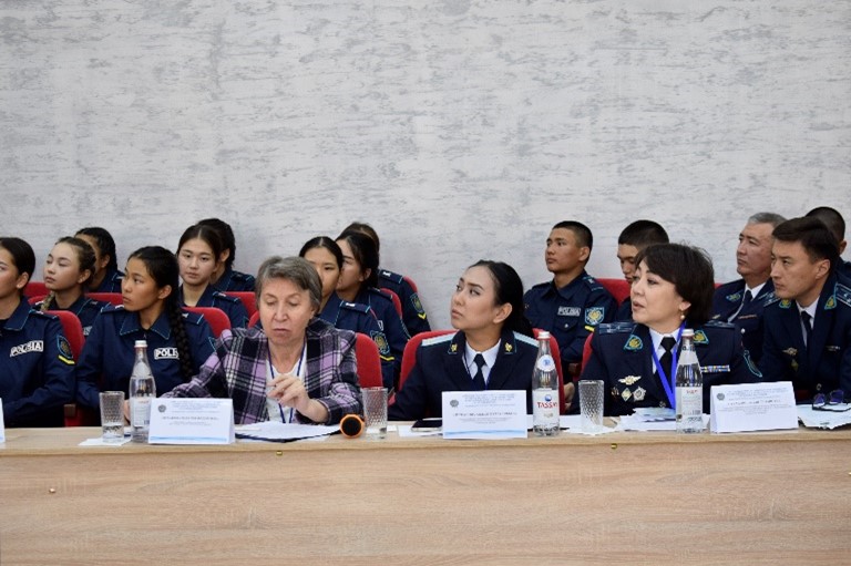Конференцияны модератор ретінде жалпы заң пәндері кафедрасының бастығы, з.ғ.к., қауымдастырылған профессор, полиция полковнигі А.К.Ибраева жүргізді.