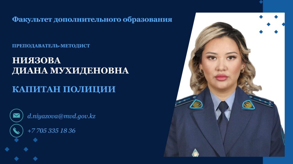 Преподаватель-методист Факультета капитан полиции Ниязова Диана Мухиденовна.