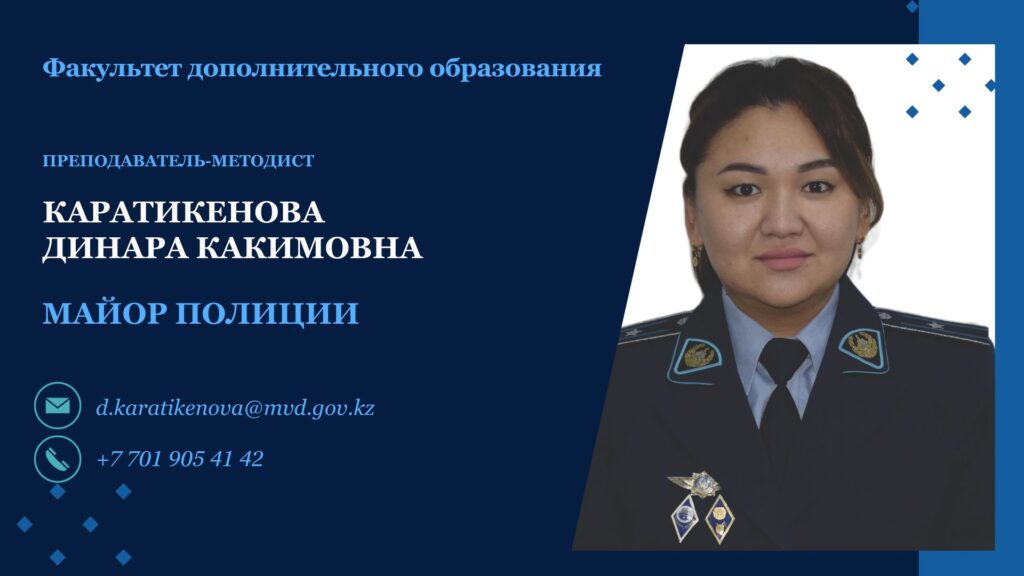 Преподаватель-методист Факультета майор полиции Каратикенова Динара Какимовна;