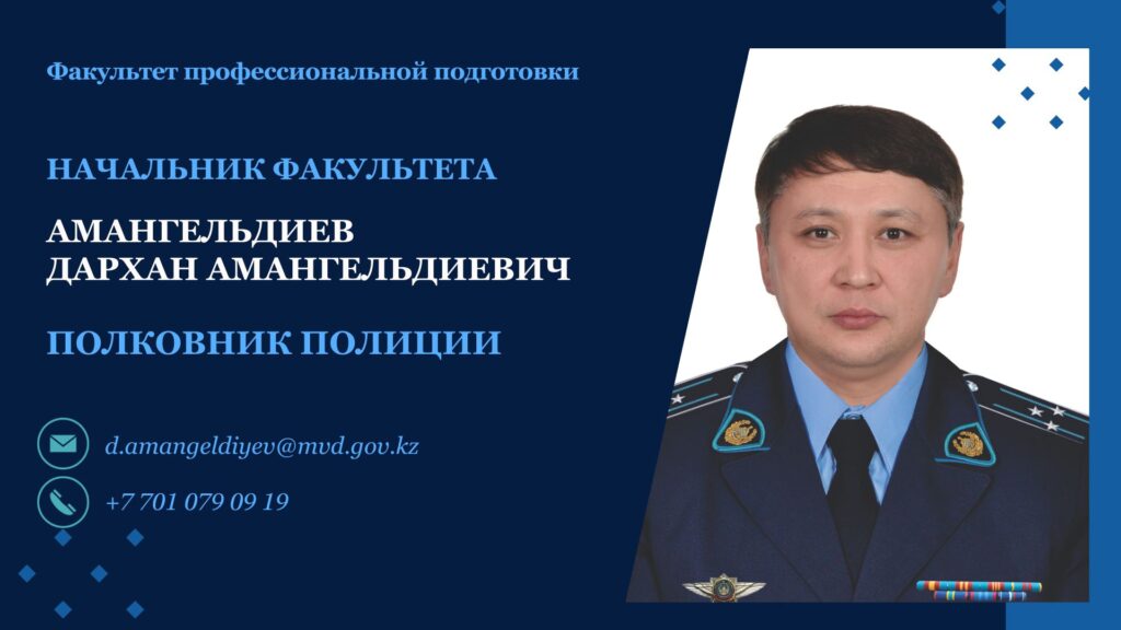 – Начальник факультета, полковник полиции Амангельдиев Дархан Амангельдиевич