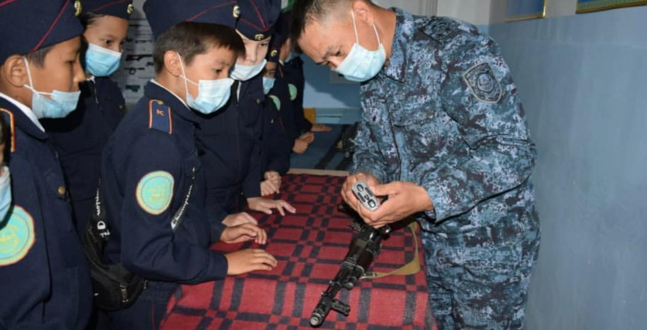 Қазақстан Республикасы ІІМ М.Бөкенбаев атындағы Ақтөбе заң институттың Ф.Оңғарсынова атындағы №41 мектеп-гимназиясымен және М.Дулатұлы атындағы №63 мектеп-лицейімен бекітілген жоспарға сәйкес, институттың арнайы-тактикалық даярлық кафедрасының оқытушылары «Жас сақшы» кадет сыныбы оқушыларына «Сап даярлығы» пәні бойынша сабақтар өткізілуде.