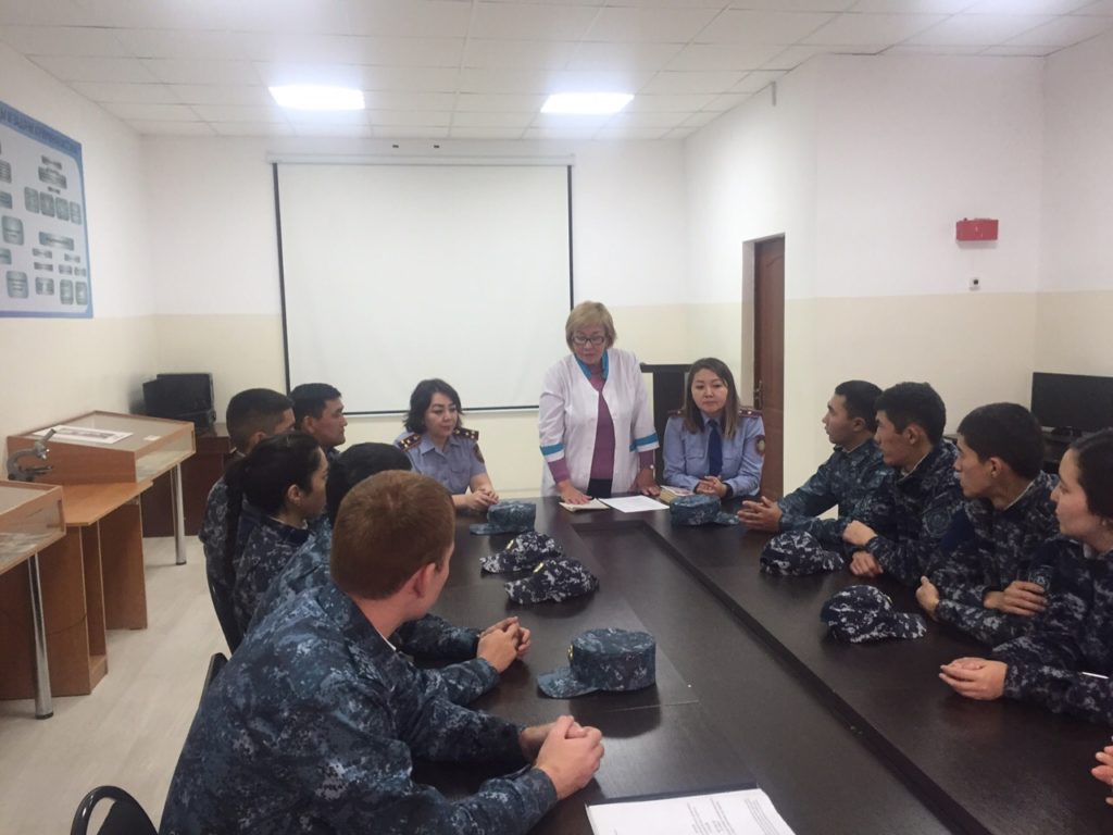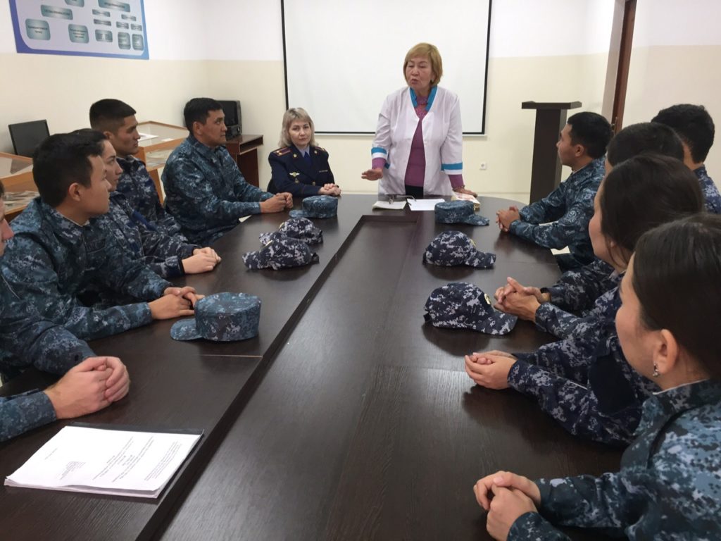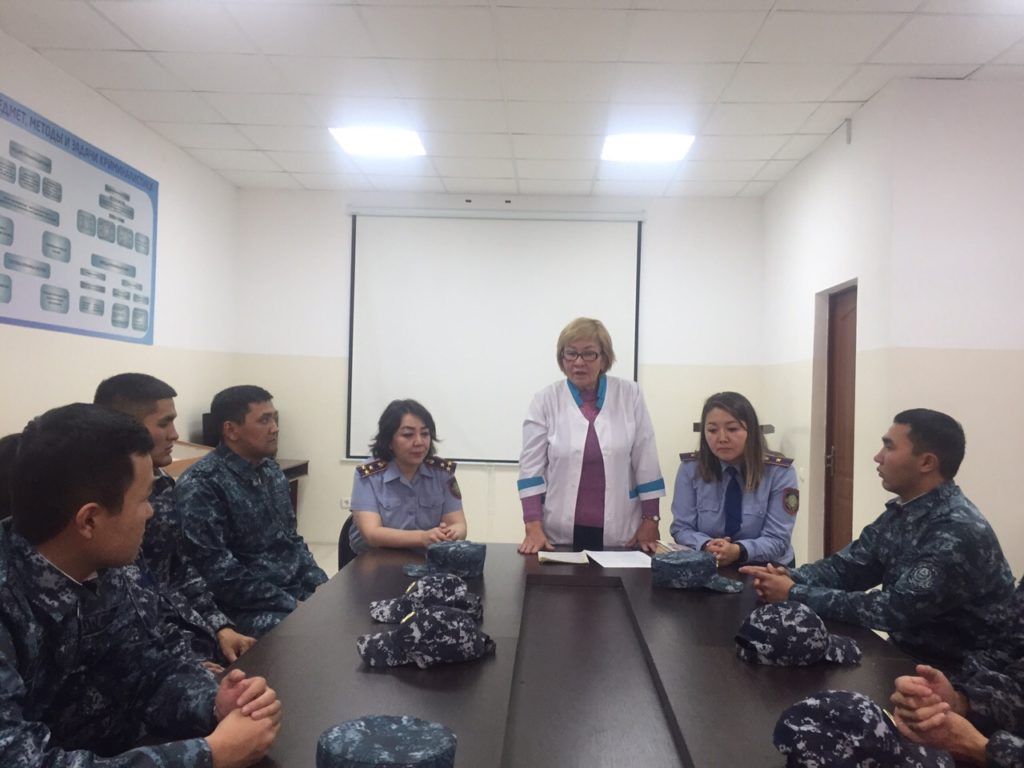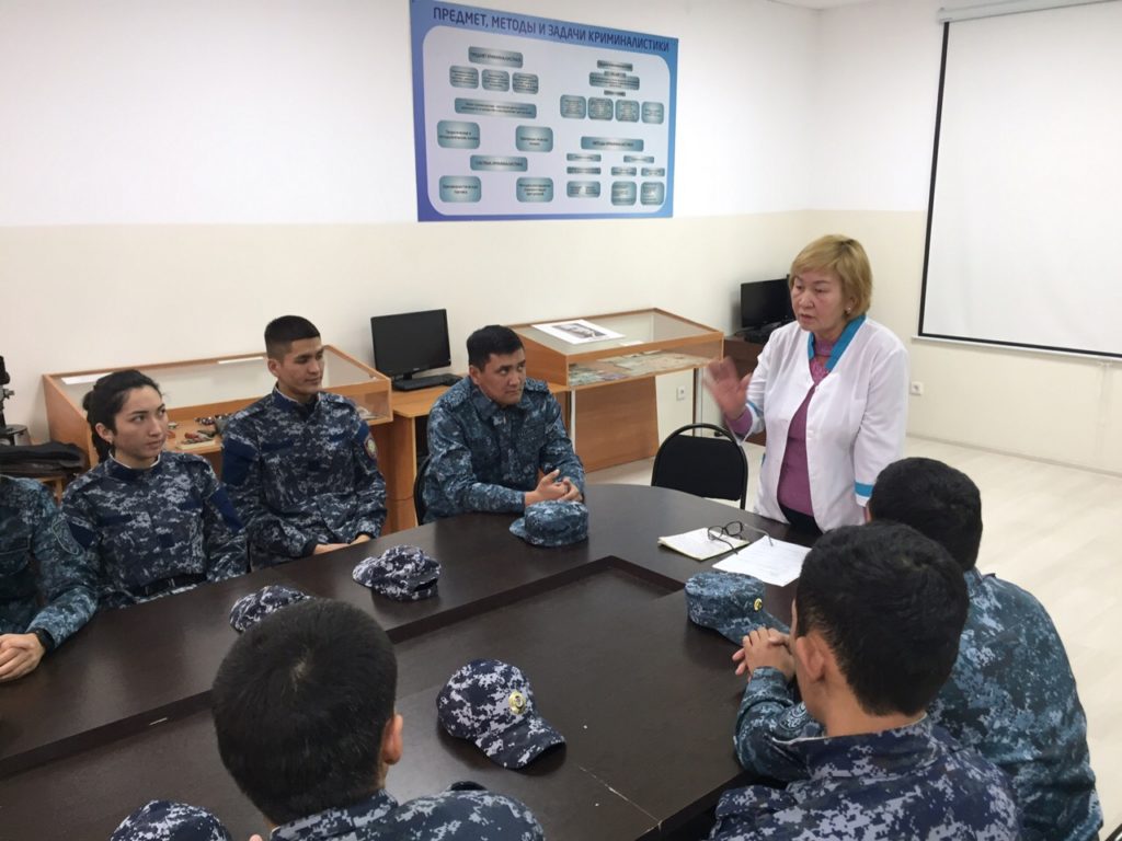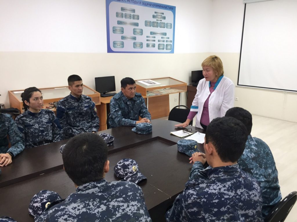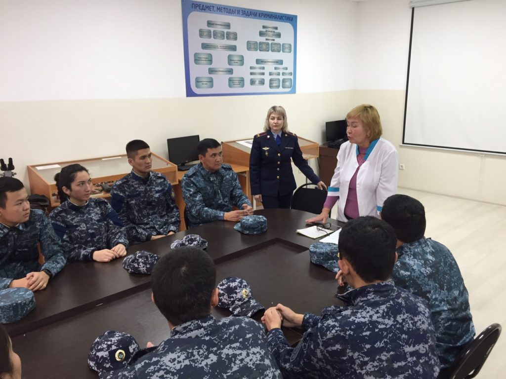 2019 жылғы 21 қазанда оқу жоспарына сәйкес, сондай-ақ ішкі істер органдарын модернизациялаудың 2019-2020 жылдарға арналған Жол картасының үшінші бағыты аясында, дәлірек айтқанда, тәжірибеге бағытталған оқыту бойынша қылмыстық процес және криминалистика кафедрасының оқытушылары полиция подполковнигі А.Е.Церковнова және полиция майоры З.А.Мухангалиева «Арнайы-тактикалық дайындық» пәні, «Босанған кездегі дәрігерге дейінгі медициналық көмек» тақырыбында тәжірибелік сабақ өткізді. Сабақ Алға орталық аудандық ауруханасының акушер-гинекологы – Гүлсім Орынбасарқызы Мухангалиеваның қатысуымен өткізілді, ол курсанттарға жедел түрде ауруханаға жеткізу кезінде алғашқы көмек көрсету алгоритмін түсіндірді, сонымен қатар жаңа туған нәрестеге және босанғанға дейінгі көрсетілетін шұғыл шаралар туралы айтты.