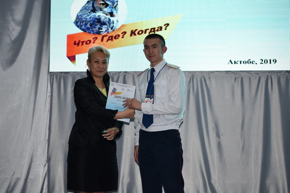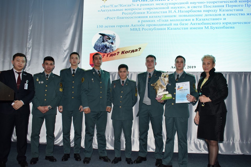 2019жылғы 04 сәуірде Қазақстан Республикасы ІІМ Малкеджар Бөкенбаев атындағы Ақтөбе заң институтында жалпы құқықтық пәндер кафедрасының профессорлық-оқытушылық құрамы институттың ҒЗжРБЖҰ бөлімімен бірге Қазақстан Республикасының Тұңғыш Президенті Н.Ә.Назарбаевтың Қазақстан халқына «Қазақстандықтардың әл-ауқатының өсуі: табыс пен тұрмыс сапасын арттыру» Жолдауы аясында, Жастар жылы мен Ақтөбе қаласының 150 жылдығы шеңберінде ұйымдастырылған «Заманауи ғылымның өзекті мәселелері» тақырыбына сәйкес «Не? Қайда? Қашан» зияткерлік сайысының 2 – кезеңі өткізілді.