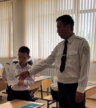 Сондай-ақ, олар балаларға жолдағы әртүрлі жағдаяттарда не істеу керектігі туралы кеңестер берді. Бұл сабақ оқушылар үшін өте пайдалы және қызықты болды, олар белсенді түрде сұрақтар қойып, суреттерді бояп, талқылауға қатысты. Белсенді оқушыларға сыйлықтар табысталды.